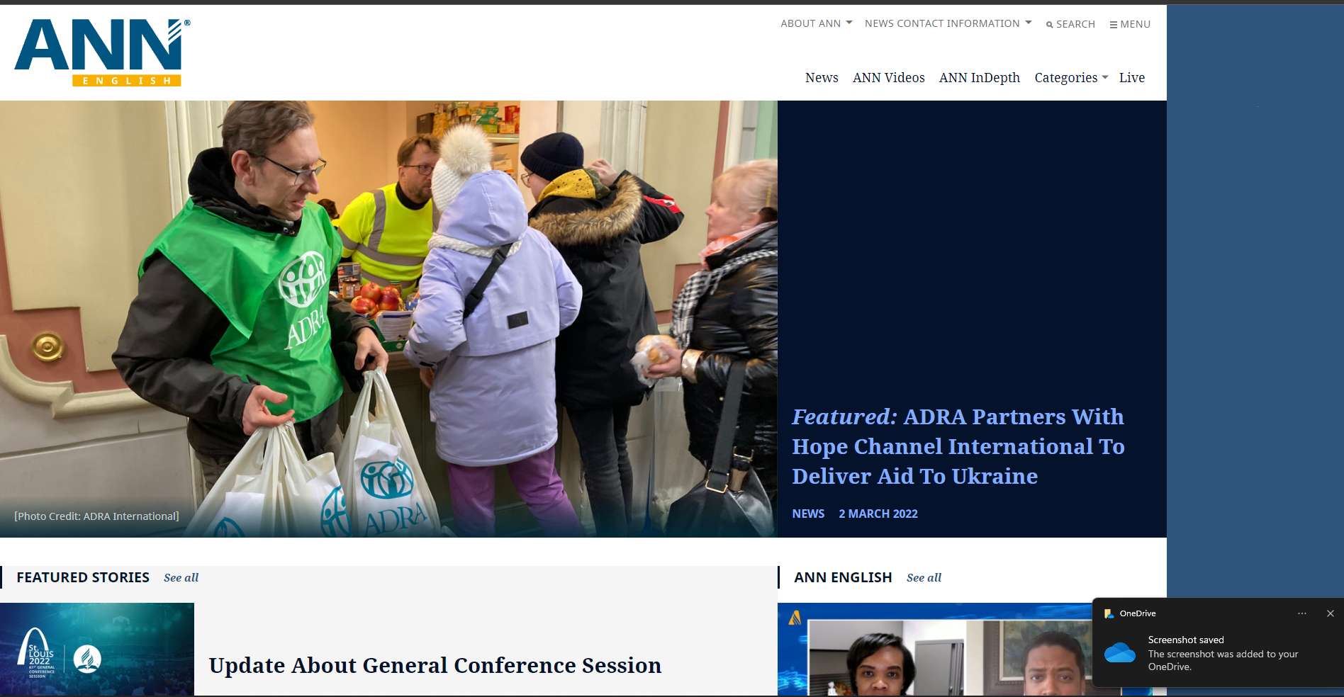 News gathering and publication of events, baptisms, special initiatives at the local, regional and international levels (ANN, WAD News).
